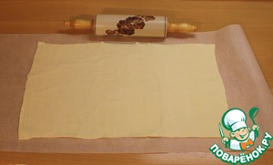 - Тесто слоеное бездрожжевое (в моём случае упаковка 375 грамм, 25х50 см) — 1 пач.