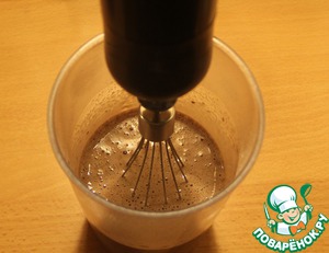 В это время белки перемешиваем с протеиновым порошком (у меня был c шоколадным вкусом)
