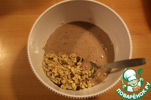 Добавляем протеиновую смесь в хлопья. Перемешиваем.