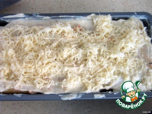 Полить оставшимся соусом и посыпать сыром.