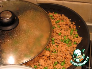 Растопить в сковороде 1 ст. л. сливочного масла, обжарить в нем фарш. (до готовности, но не выпаривая всю влагу)