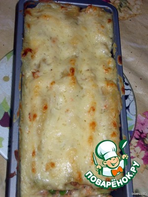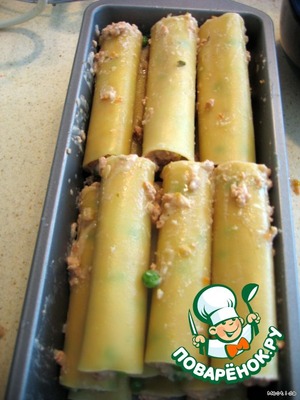 Рецепт «Каннеллони с тремя видами мяса и зеленым горошком»: