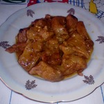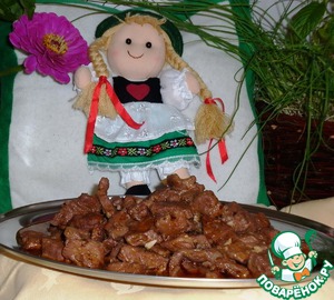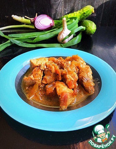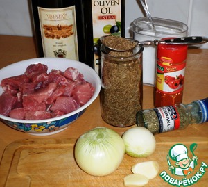 Мясо (в оригинальном рецепте используется говядина, я в этот раз готовила из свинины) нарезать кубиками, лук измельчить.