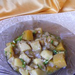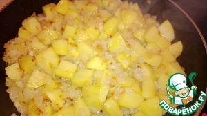 Картофель очистить, нарезать кубиками 2х2 см и обжарить на оливковом масле до золотистого цвета. -