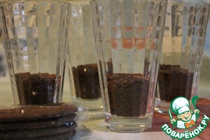 • Выкладываю крем в стаканы на слой печенья, а сверху - фруктовую массу.