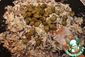 Добавляем каперсы. Все аккуратно ыкладываем в форму с беконом и отправляем в духовку на 1 час.