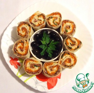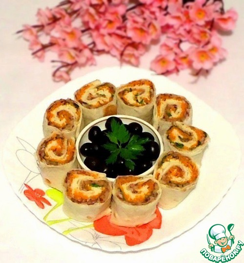 Аккуратно сворачиваем в рулеты. По желанию рулеты можно подогреть.