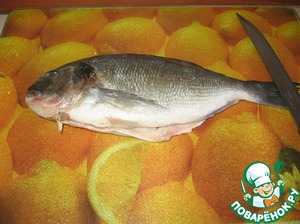 Рыбу очистить от чешуи, выпотрошить, помыть и промокнуть бумажным полотенцем. На рыбе делаем разрезы глубиной полсантиметра - для того, чтобы рыба пропеклась равномерно.
