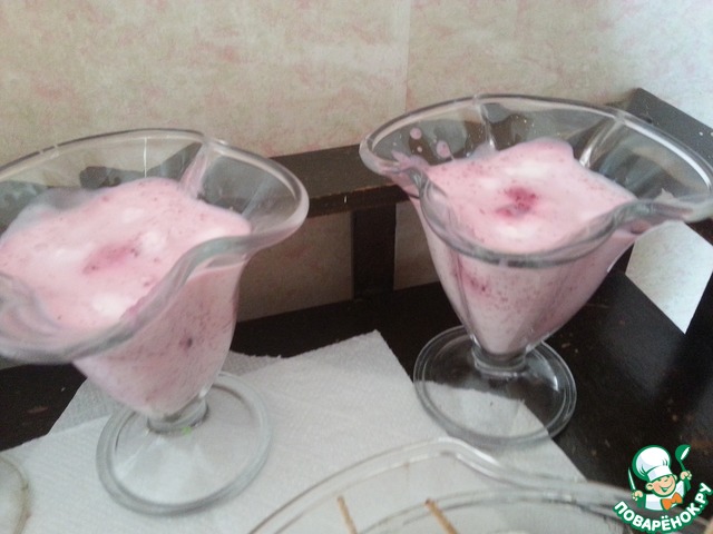 Разложить в бокалы (стаканы, креманки) для порционной подачи и украсить.