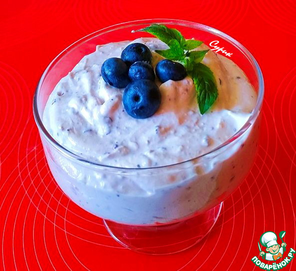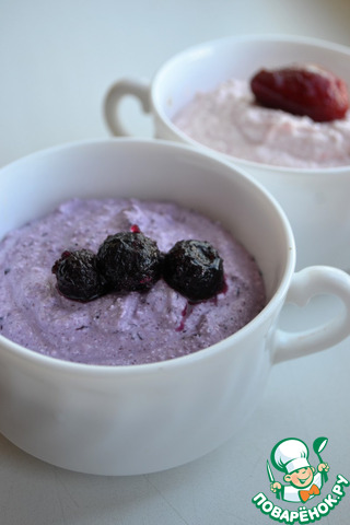[+5]Готовила из размороженной черники и клубники, из зернового 9-% творога и натурального густого йогурта; сахар не добавляла.