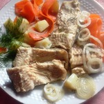В общем, еще раз подтверждаю - рецепт очень хорош! Почему-то мне еще видится карп, приготовленный так же, только крупный, жирный, большими куками. Держу себе на заметке.