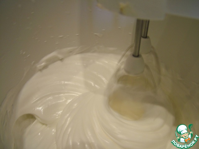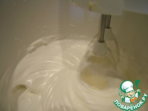 Убрать с огня и взбить до крепких пиков и полного остывания.