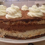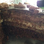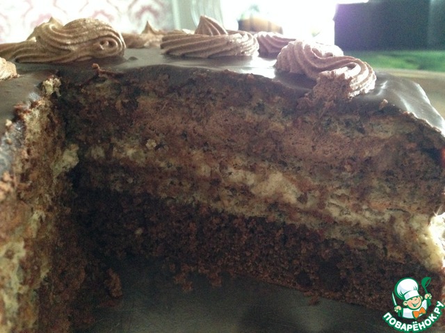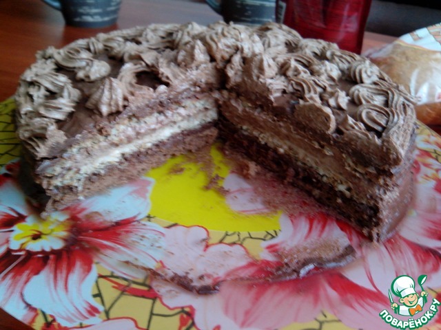 6) Собираем торт. Расположение слоев снизу вверх (коржи пропитываем слегка сладким кофе).