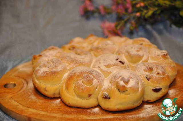 Хочу предложить свой рецепт булочек-розочек. На сайте много, но таких не нашла, может, пропустила... Итак, нам нужна будет клюква сушеная, или же можно добавить изюм.