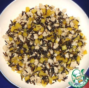Затем добавить вареный дикий рис, соль и перемешать. Начинка для пирожков готова!
