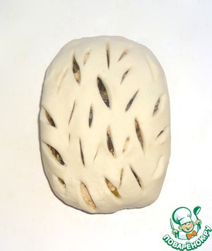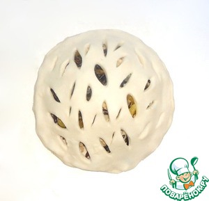 Сверху начинку накрыть кружком из теста с надрезами и защипнуть края.