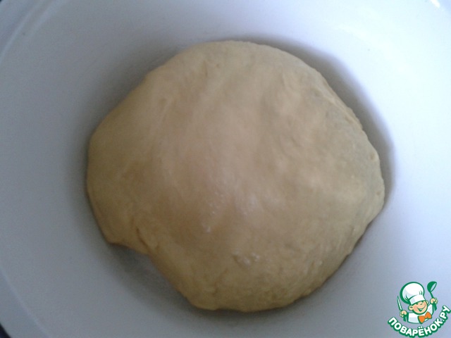 • Тесто хорошо вымесить, оно должно быть мягкое, немного липнущее к рукам. Тесто выложить в миску, смазанную растительным маслом. Укутать и оставить в теплом месте для увеличения в объеме вдвое.