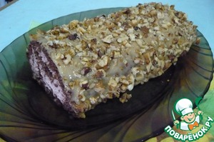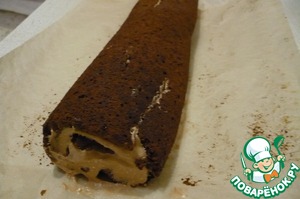 Вынимаем рулет и промазываем хорошенько карамелью верх и бока.