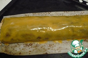 Теперь, помогая пергаментом, сворачиваем рулет.