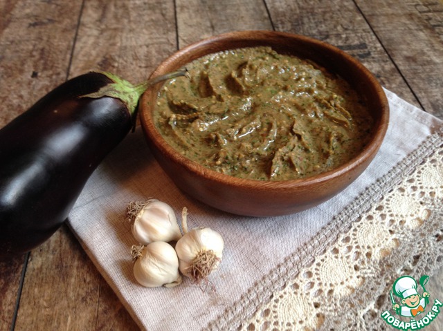 Все наши оставшиеся ингредиенты вместе с баклажанами помещаем в блендер и хорошенько пюрируем.