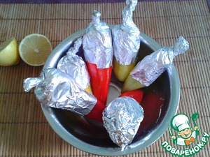 Я делаю совсем легенькие- без лишних калорий и соли. Просто начинаю перцы обезжиренным творогом с яйцом и со специями. И в духовку. Шапочки из фольги не надеваю, начинка не вытекает.