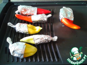 Печеный болгарский перчик с острой сырной начинкой. Хорошая закуска, простенькое, но идеальное блюдо для барбекю-party.