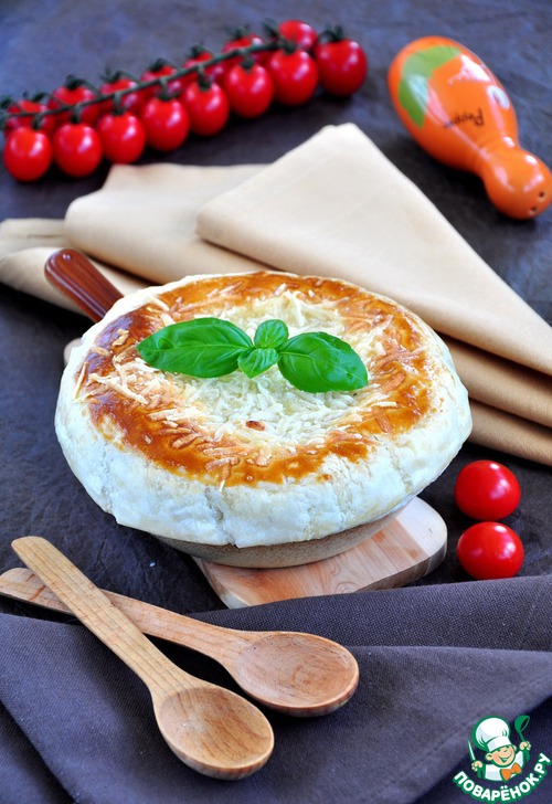 Описание: Слова автора: Пирог, который запекается сразу в сковороде, может быть как прекрасным угощением для гостей, так и сытным ужином. Под хрустящей корочкой слоеного теста с сыром и прованскими травами скрывается нежная сливочная начинка из рыбы (курицы), грибов и лука-порея.