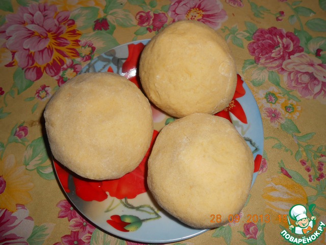 в скобках вставить, из чего замесить песочное тесто. Конечно, в списке ингредиентов указано, какой ингредиент для чего. Но поскольку кроме основного теста есть ещё и шоколадные шарики, чтобы не запутаться, можно перечислить в тексте рецепта.