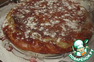 Да, и еще, что немаловажно- хороший выход готового изделия, я делала круглый , в готовом виде 25 см в диаметре и около 9 см высотой. Нам на 4-х много, придется звать гостей.