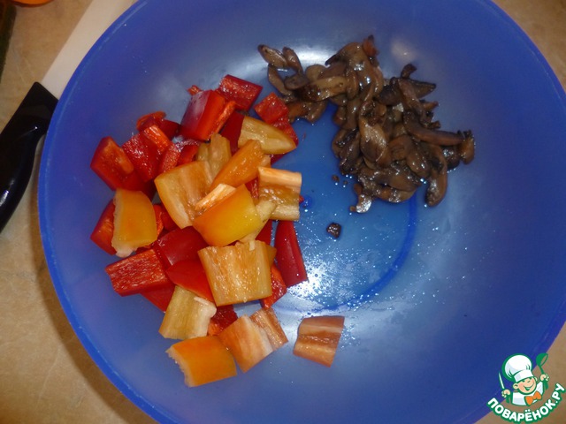 • Тушим шампиньоны с 1 ч. л. оливкового масла до готовности, при необходимости добавляем немного воды