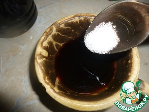 • Добавляем приправу, сахар смешиваем с соевым соусом до полного растворения.