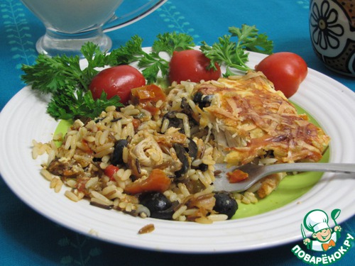 Рис - многоликая культура. Есть рис для плова, есть для суши, для ризотто... Познавая новые сорта, мы все больше и больше в него влюбляемся, узнаем его новые свойства и способы его применения в кулинарии. Предлагаю познакомиться с рецептом эквадорской кухни, в котором можно использовать рис Акватика mix марки Мистраль, состоящий из смеси пропаренного и дикого риса. Эта смесь хороша тем, что сочетает в себе полезные свойства достаточно грубого по своей фактуре дикого нешлифованого риса и нежного и рассыпчатого пропаренного длиннозернового риса. Блюдо действительно праздничное, карнавальное, состоящее из множества ингредиентов, вполне нам доступных, позволяющее представить кухню далекого нам Эквадора. Рецепт из книги "Эквадорская кухня", привезенной и подаренной мне эквадорским студентом.