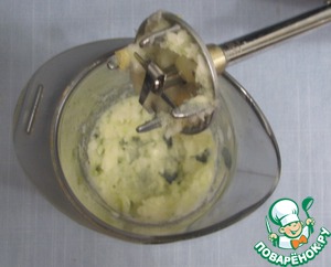 Для приготовления сырного соуса в блендере измельчить луковмцу.
