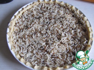Выложить остывший рис в форму на тесто.