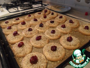 На каждое печенье в центр выложите по ягодке проваренной вишни