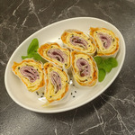 Нарезать рулеты и подавать на стол.