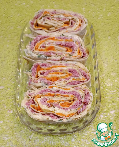 Рецепт «Рулет из лаваша с морковью по-корейски»: