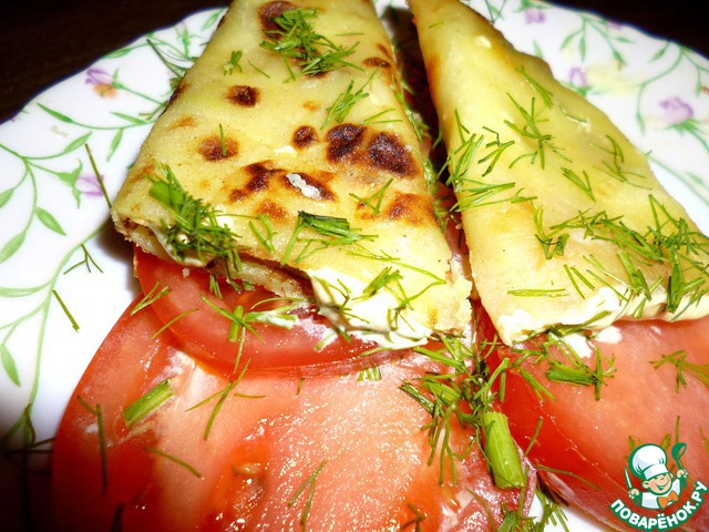 Итак, наши лепешки готовы! Кушаем, полив лепешку соусом и завернув рулетиком. |