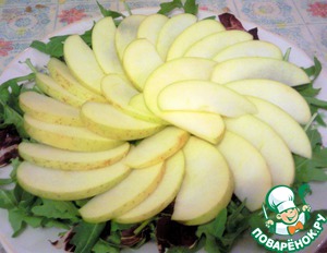 Выкладываем яблоки на салатные листья.
