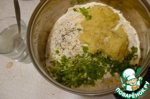 В миску просейте муку, добавьте соль, горчичный порошок. Перемешайте. Добавьте картофельное пюре, тертый сыр (оставив 2 ст. л.).