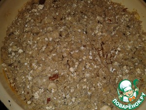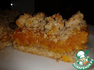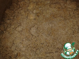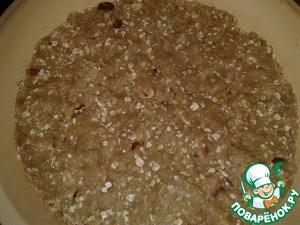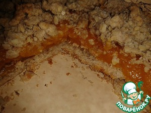 Измельчаем в крупные крошки оставшееся тесто, посыпаем ими наше большое пироженко :) и ставим в духовку на 30 минут. Остужаем в форме и выкладываем на блюдо. Разрезаем на 8 частей.