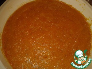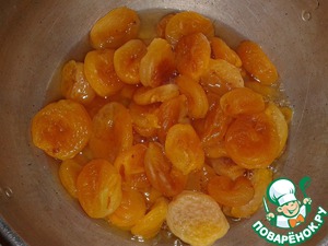 Тушим курагу в 300 мл воды в течение 30 минут до мягкости. Пюрируем курагу вместе с жидкостью, в которой она тушилась.