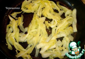 Кабачки нарезать тонкими полосками. Обжарить на растительном масле минут 5.