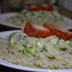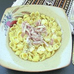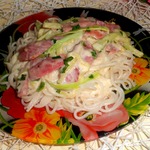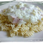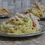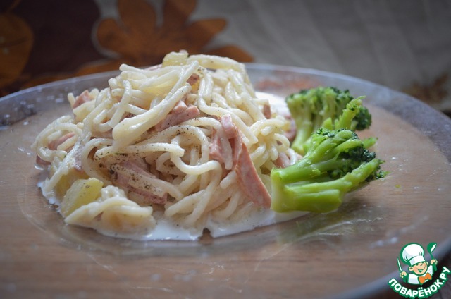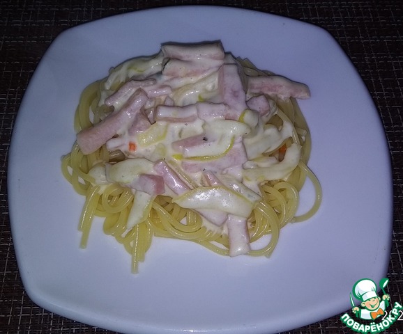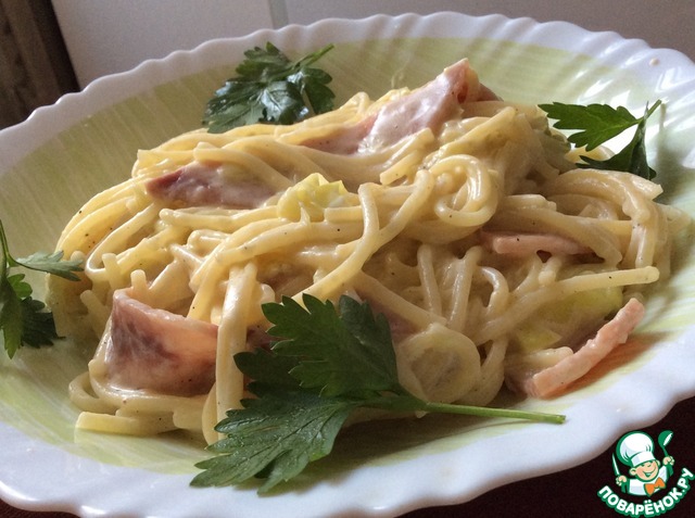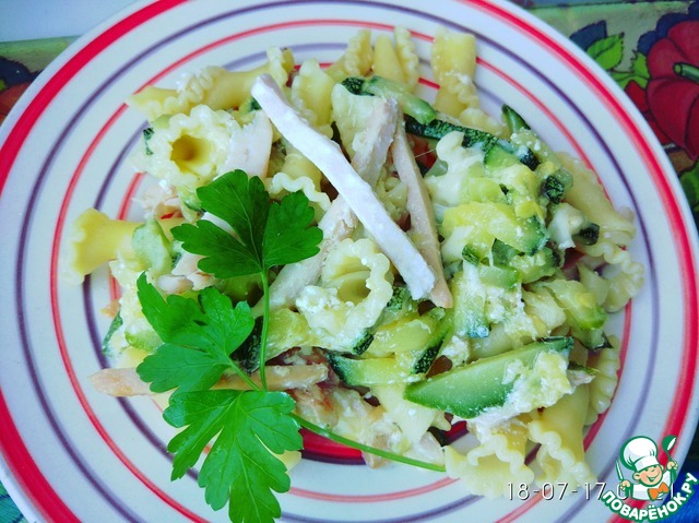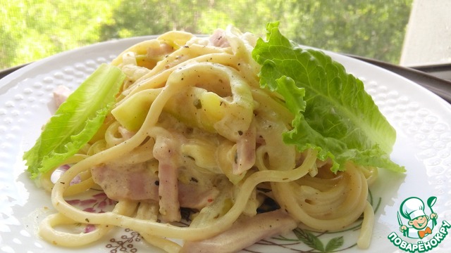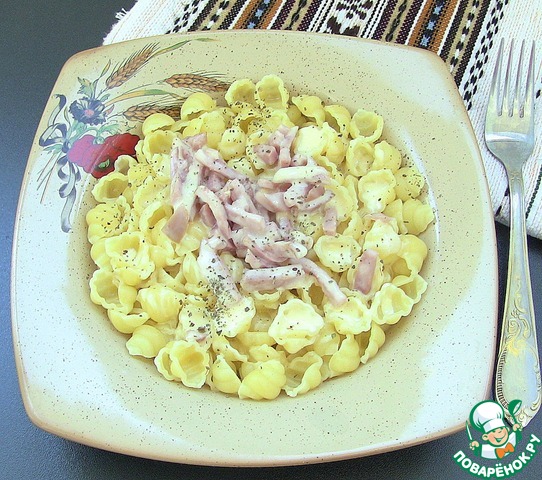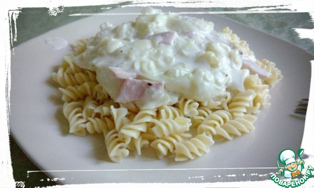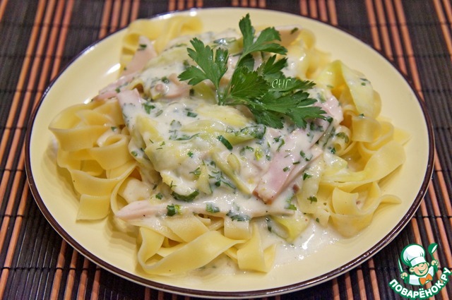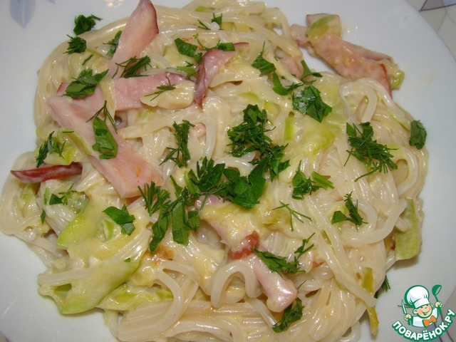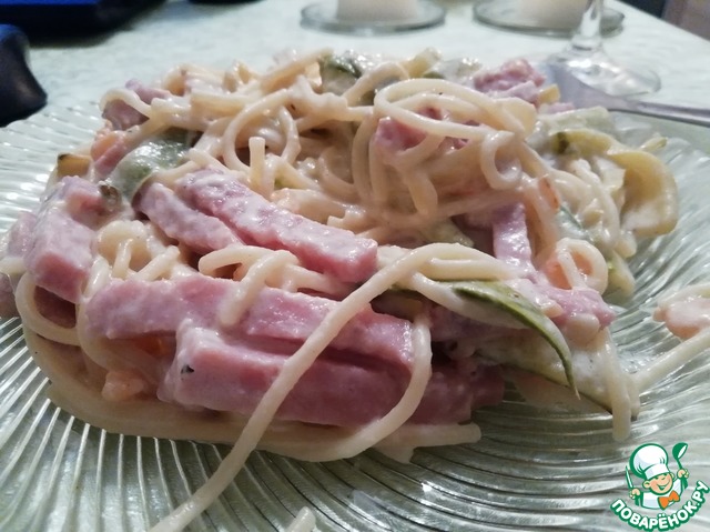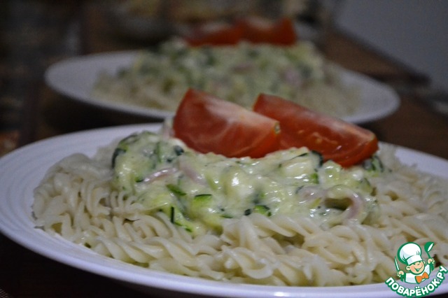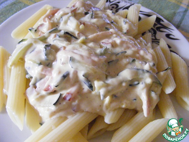 Рецепт «Паста с кабачками и ветчиной в сырном соусе»: