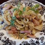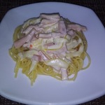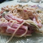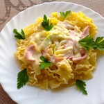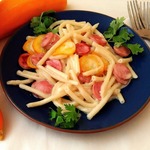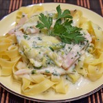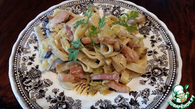 Паста с кабачками и ветчиной в сырном соусе