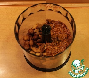 Подсушенные орехи лесные и миндаль измельчаем в блендере около 30 секунд, чтобы не пустили жир.