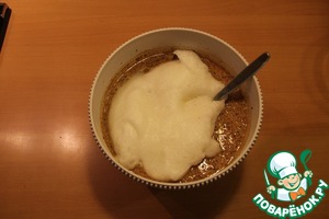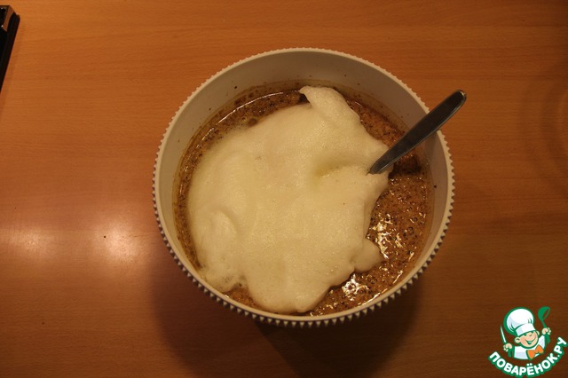 Взбиваем в пену белки, вводим в тесто и аккуратно перемешиваем ложкой.