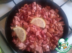 на разогретую сковороду со сливочным маслом выкладываем нарезку для жарки, но тут хитрость... обязательно добавляем 2 кусочка лимона и жарим до легкой корочки. -