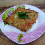 Когда тыква будет готова, положите её в блюдо с беконом и добавьте туда же отварной рис. Отдельно взбейте три яйца с молоком и этим омлетом залейте смесь из риса и тыквы. А теперь по вкусу можете положить соль, специи, которые кладу я или любые другие, которые вы любите. Добавляйте понемногу, чтобы не ошибиться.