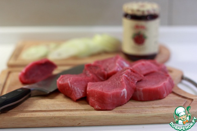 Рецепт «Филе миньон с луково-брусничным соусом»: